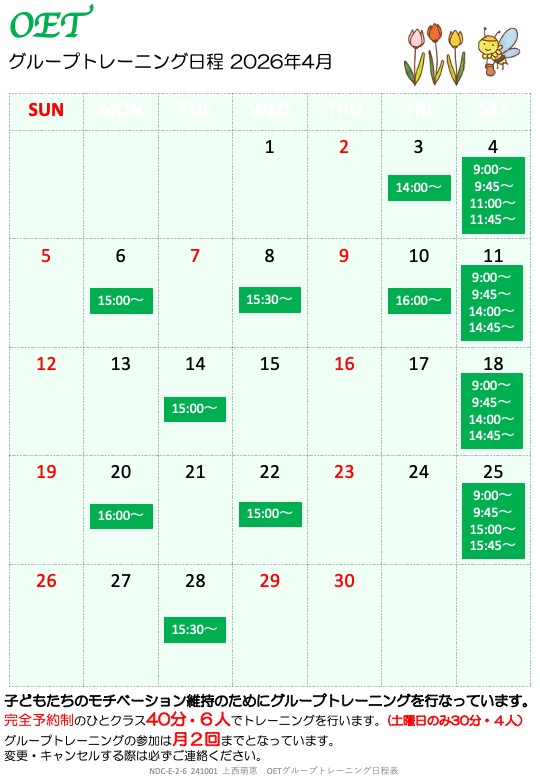 4月のOETグループトレーニングを更新しました!